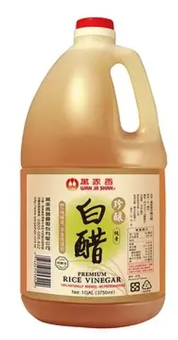 Wan Ja Shan Premium Rice Vinegar is a superior quality, naturally brewed condiment produced in Taiwan under strict quality control standards. This one-gallon (3750ml) offering is crafted from select glutinous rice through traditional fermentation methods, ensuring authentic flavor and premium quality. Free from MSG, preservatives, and glacial acetic acid, this vinegar represents pure, unadulterated craftsmanship. Certified by SGS and produced in facilities meeting ISO22000 and HACCP standards, it guarantees both safety and excellence. With a generous three-year shelf life, this versatile vinegar is ideal for professional kitchens and culinary enthusiasts who demand authentic Asian flavors in their cooking. Perfect for marinades, dressings, and traditional Asian cuisine.